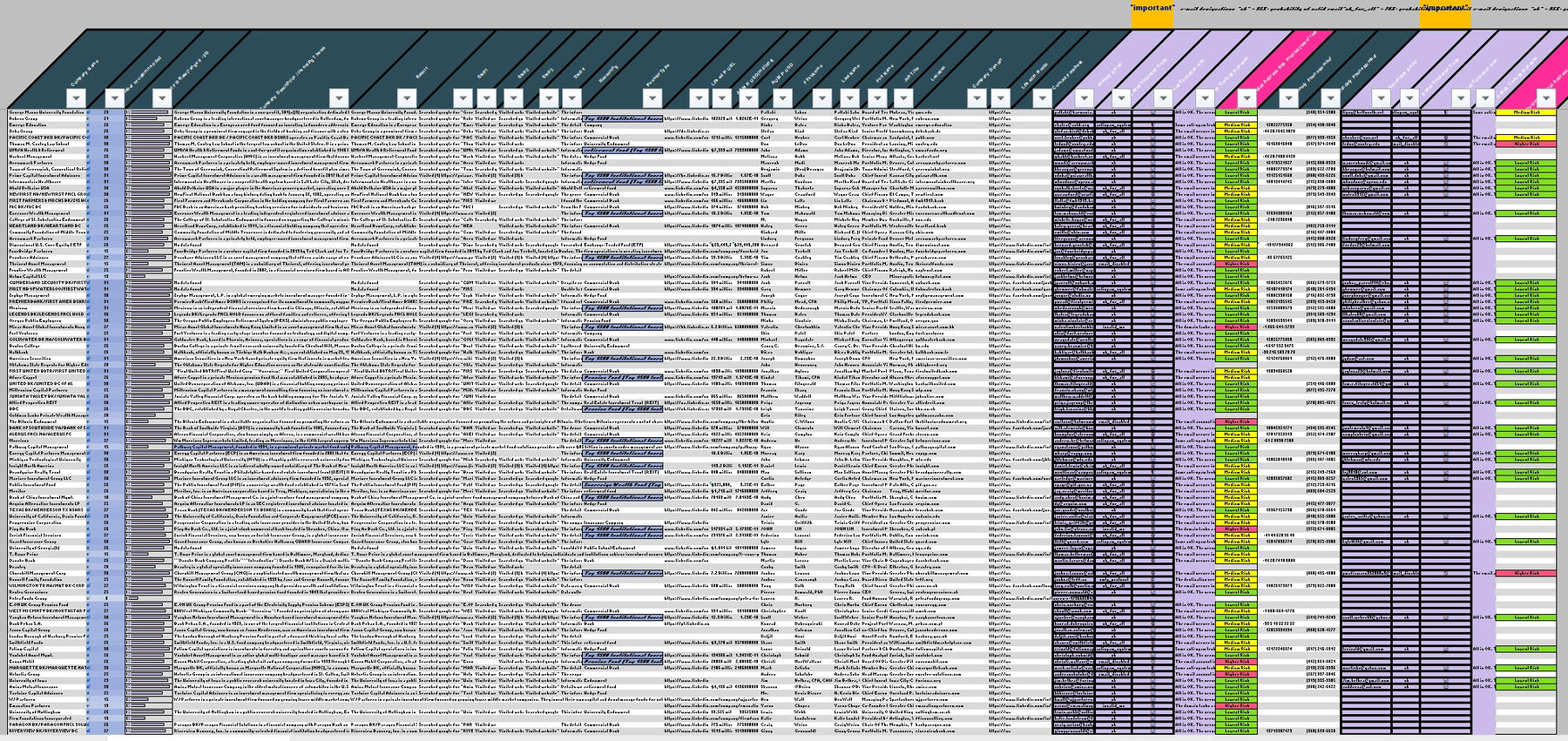 • Director of Investments• This database is MAMMOTH - approximately 6X the size of other competing Family Office compilationsFO MAX Data Quality: The A.I. "gets it right" a significant amount of the time, but there are also incidents of misses or "hiccups." Overall our aim was to get 80%+ accuracy levels in aggregate. If you are looking for 100% data accuracy, do not purchase this product.Remember, a substantial portion of Family Offices are hidden, which makes the task of compiling this data particularly challenging.Sample FO MAX Data